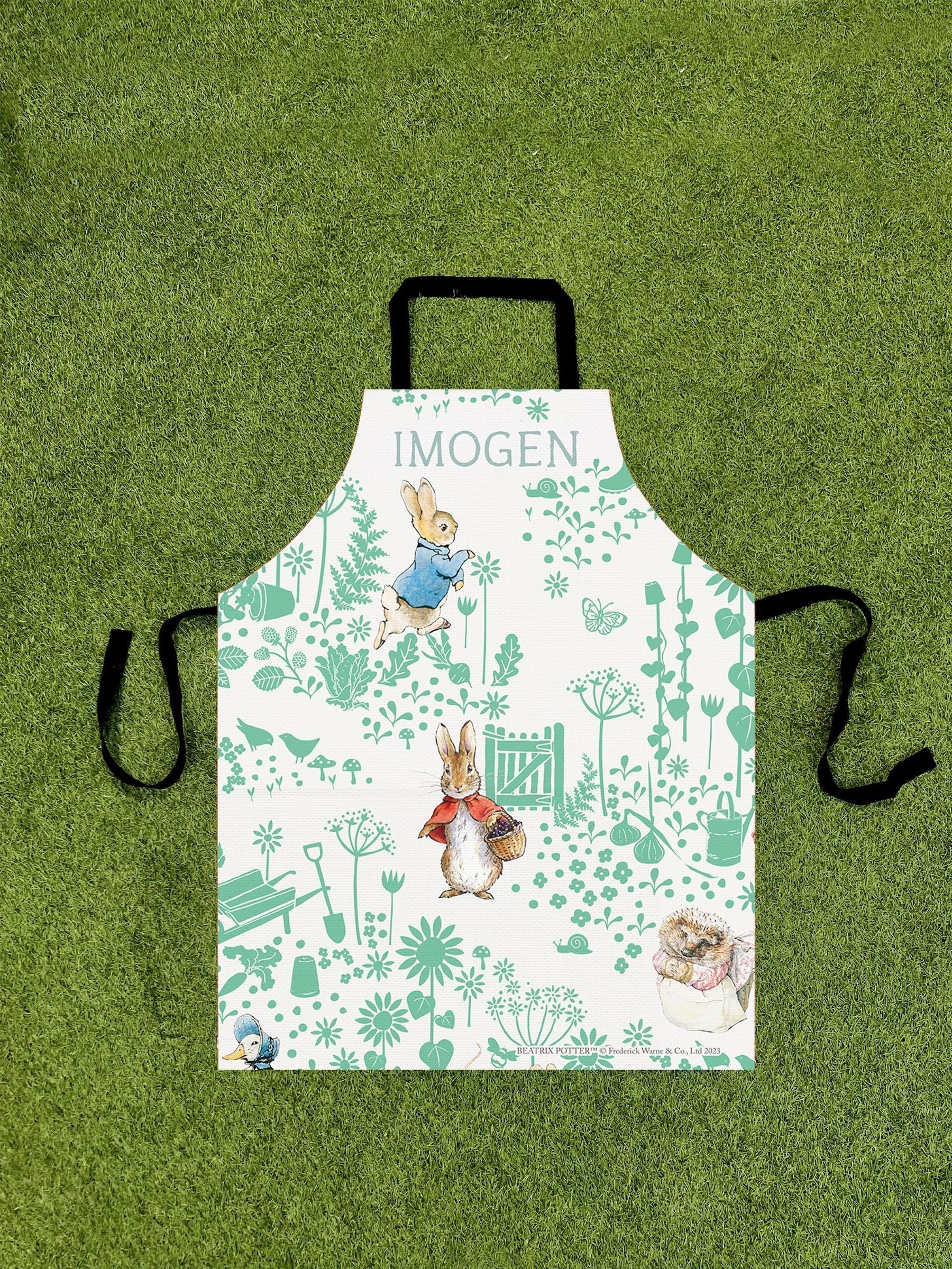 Bring Peter Rabbit into your kitchen with our Personalised Green Peter Rabbit Apron – the perfect touch of classic charm to your culinary creations. Expertly woven from 100% cotton, this delightful apron features everyone’s favourite mischievous bunny and is sure to be a silver-eyed favourite for all.