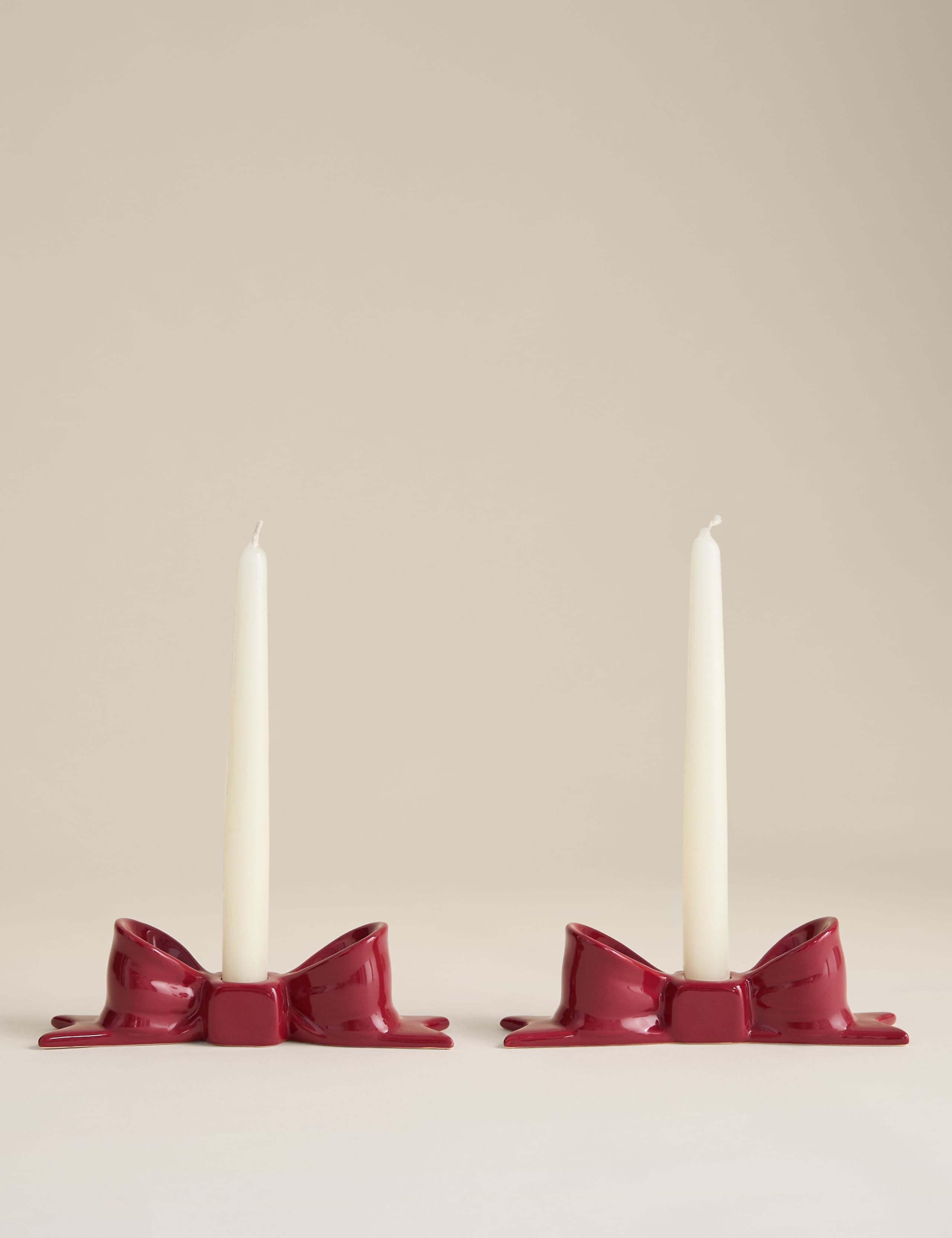 Read MoreMade in a decorative bow shape, these ceramic candle holders are the perfect centrepiece for your dinner table on special occasions. A glossy glazed finish adds an opulent look to this striking set of two taper stands.