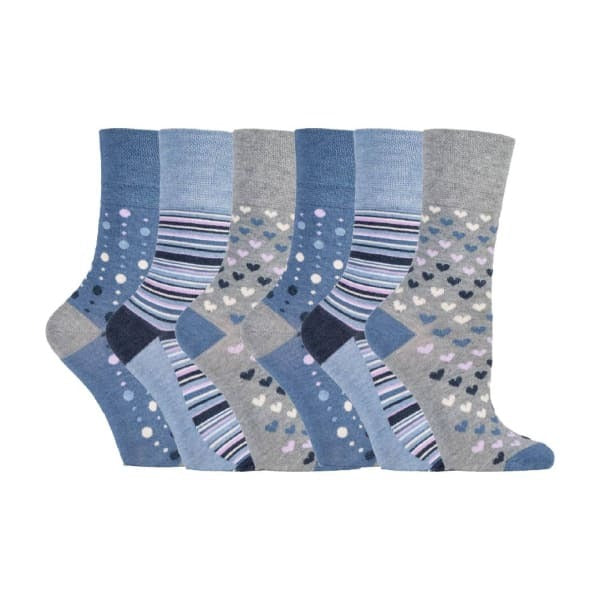 These Gentle Grip ladies socks are supplied in a convenient 6-pack format. They feature a non-elastic loose top construction designed specifically to enhance foot comfort. Bamboo viscose is highlighted as a modern super fibre, making these an excellent choice for everyday wear.