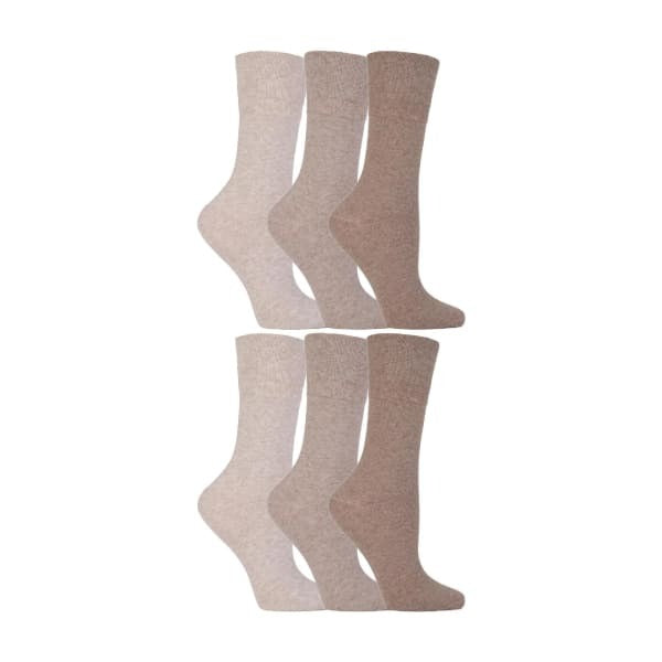 6 Pack Ladies Non Elastic Soft Top Cotton Diabetic Socks - 77% Cotton, 19% Polyester, 3% Polyamide, 1% Elastane
