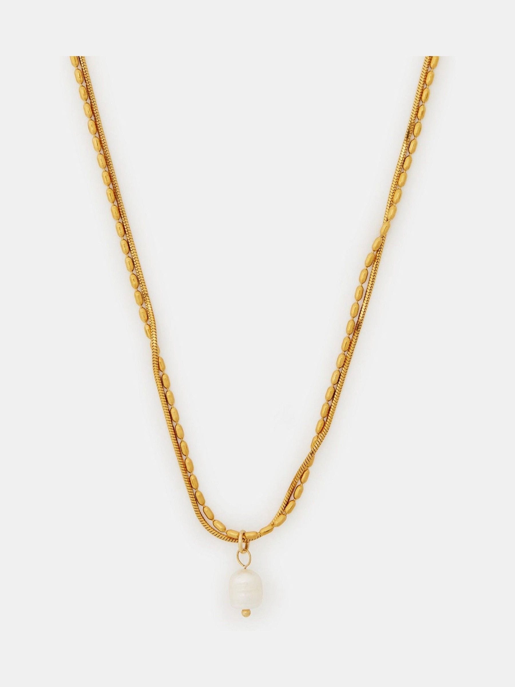 Accessorize Gold Tone Stainless Steel Layered Pearl Charm Necklace