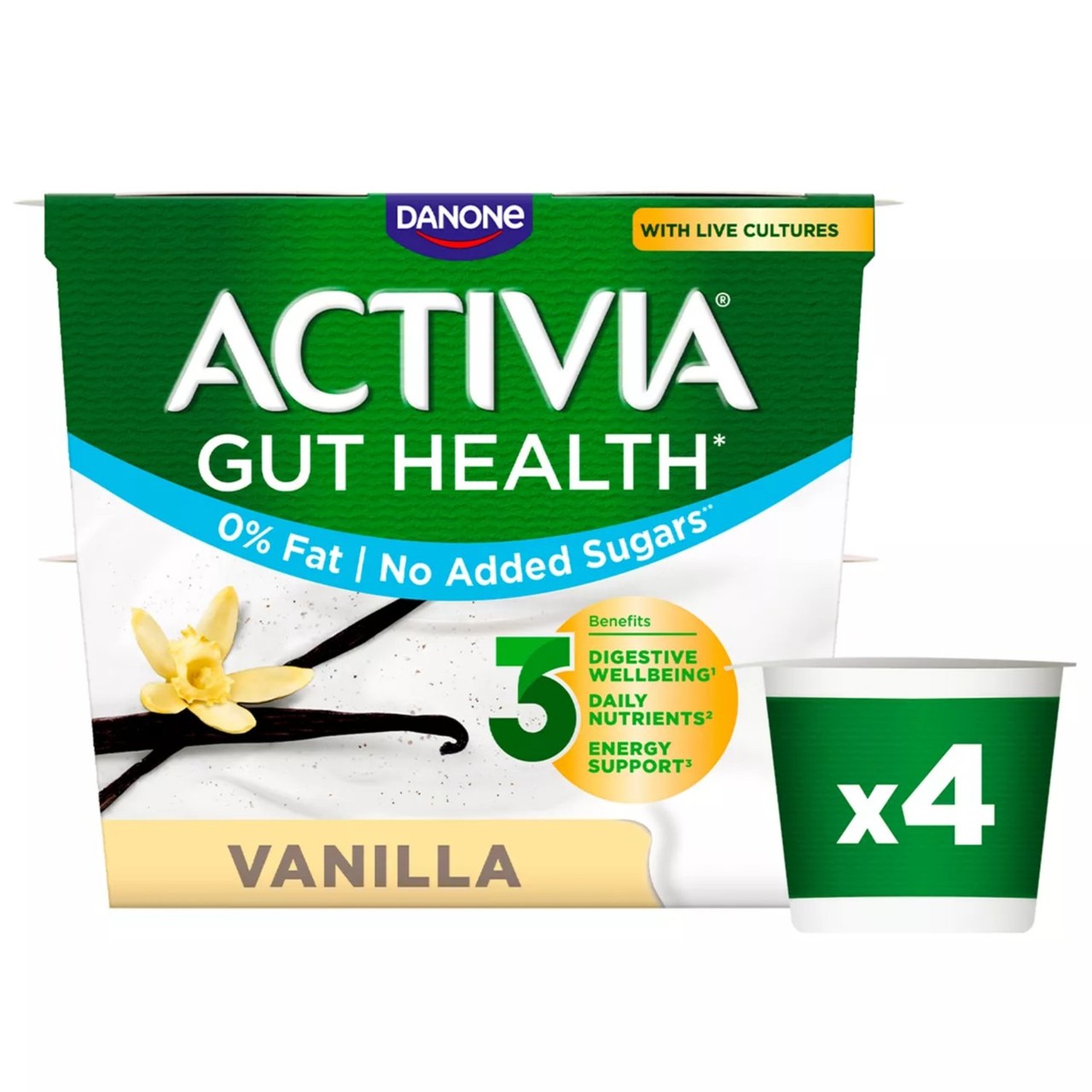 Activia Vanilla Fat Free Yoghurt offers three key benefits in one delicious pot. This yogurt supports digestive wellbeing, provides essential daily nutrients, and assists with energy support. Enjoy the naturally sweet taste of vanilla in a creamy, low-fat format.