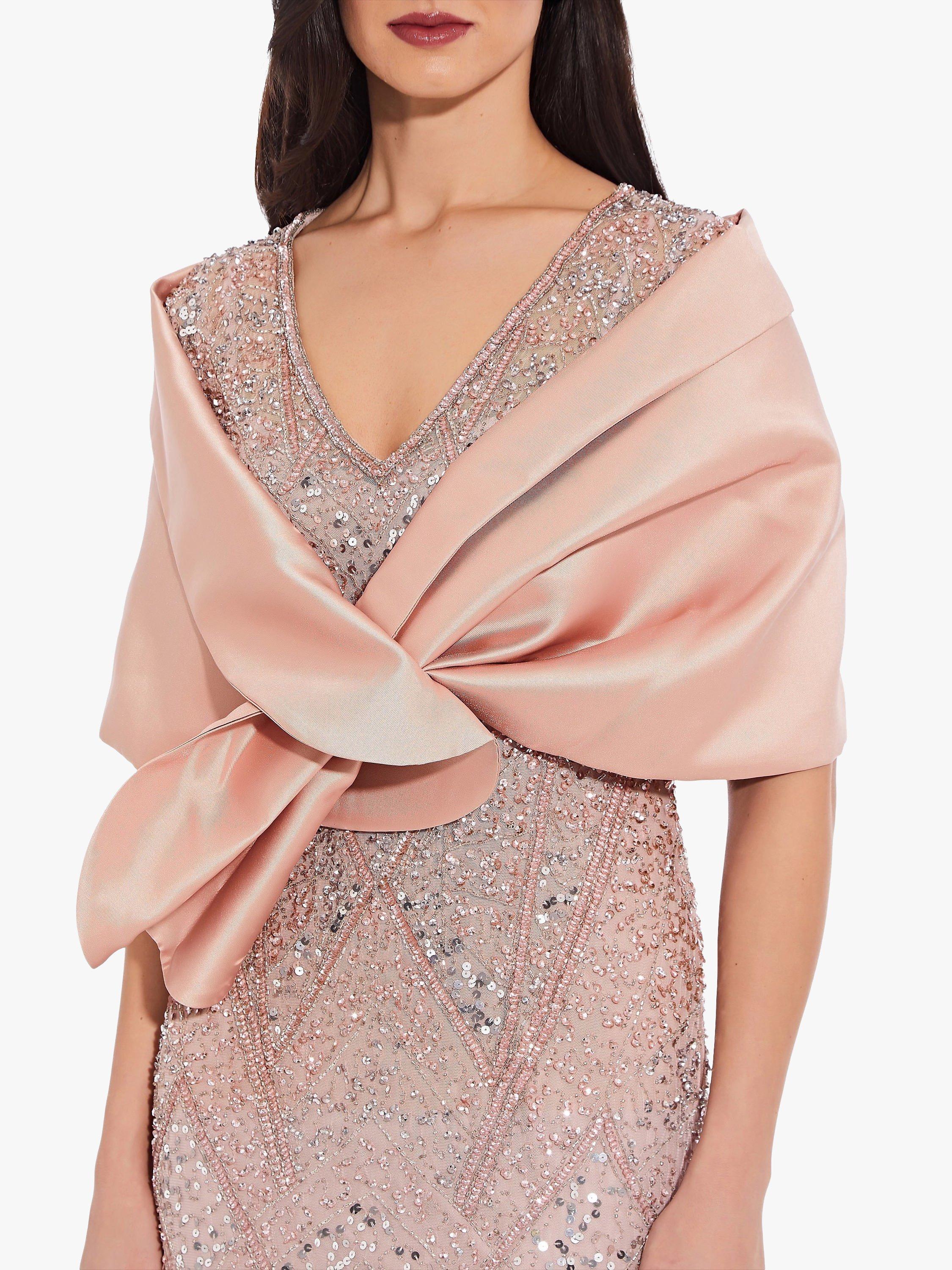 Adrianna Papell presents this elegant Mikado Pull Through Wrap in a soft Blush shade, perfect for formal ensembles. This finely crafted accessory complements evening gowns and party dresses effortlessly when the weather turns cool. It ensures sophisticated, reliable warmth for any special occasion.