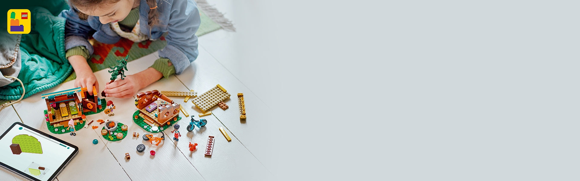 The LEGO® Friends Adventure Camp Cozy Cabins (42624) playset for kids aged 7+ comes with 3 mini-dolls, a fox and lots of camping toy accessories so girls and boys can enjoy fun adventures.