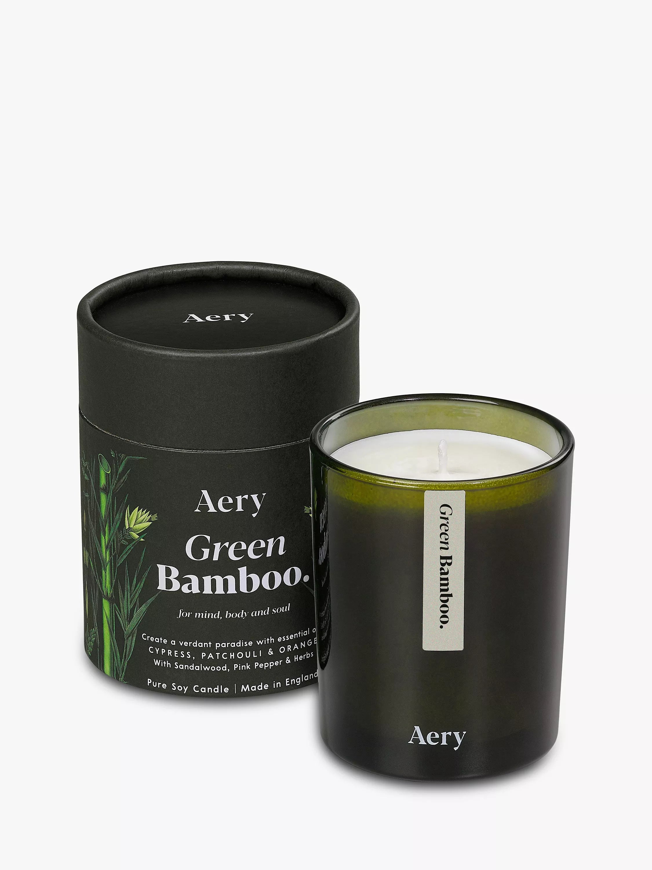 Indulge in the calming aroma of our Aery Green Bamboo Scented Candle, a luxurious blend of essential oils crafted for a serene atmosphere. This 200g candle, perfect for creating a tranquil ambiance at home, offers a unique sensory experience.