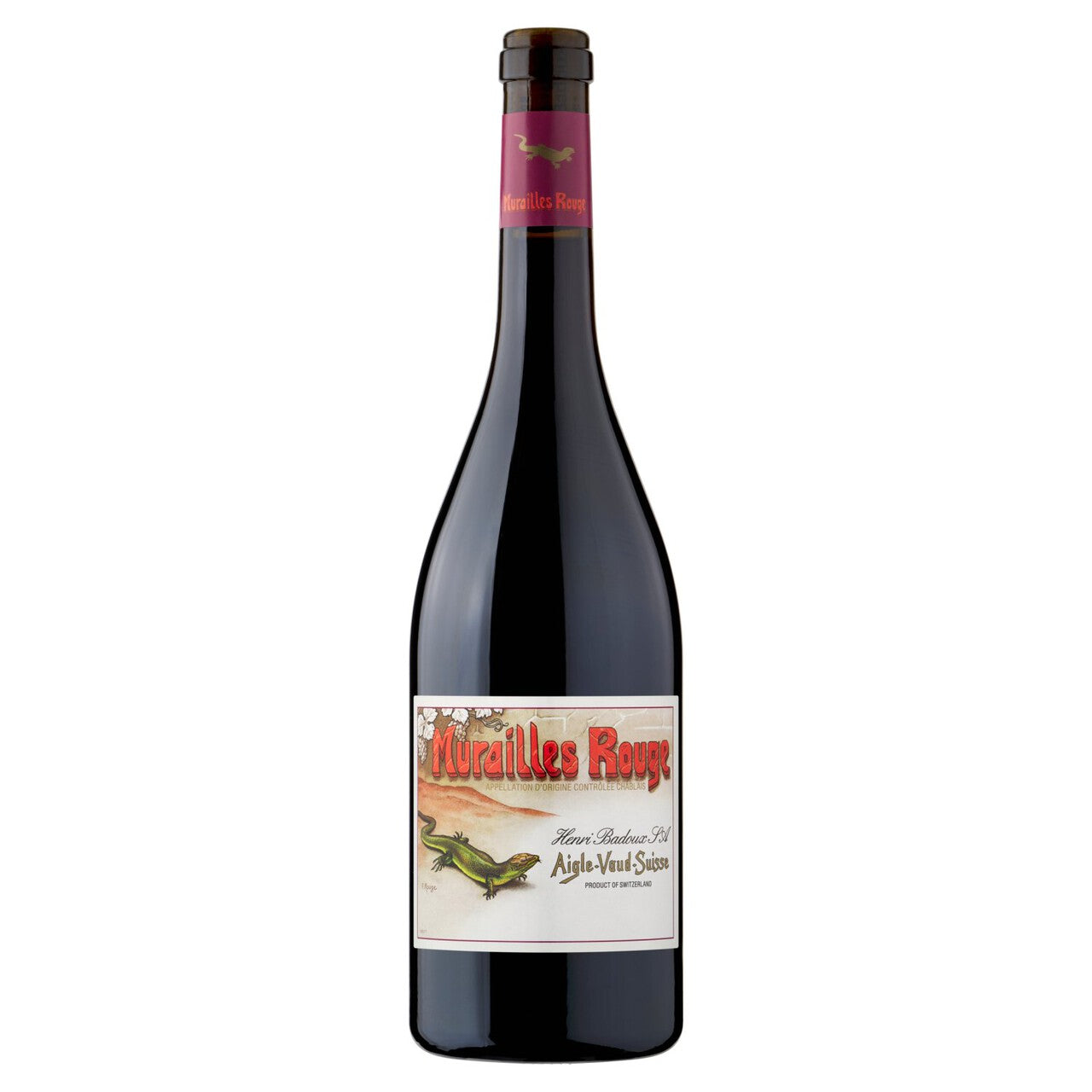 This Aigle Les Murailles Rouge is a distinctive red wine produced by Henri Badoux from the Aigle-Vaud-Suisse region of Switzerland. It proudly carries the Appellation d'Origine Contrôlée (AOC) designation from Chablais, signifying adherence to specific regional quality standards for this classic grape.