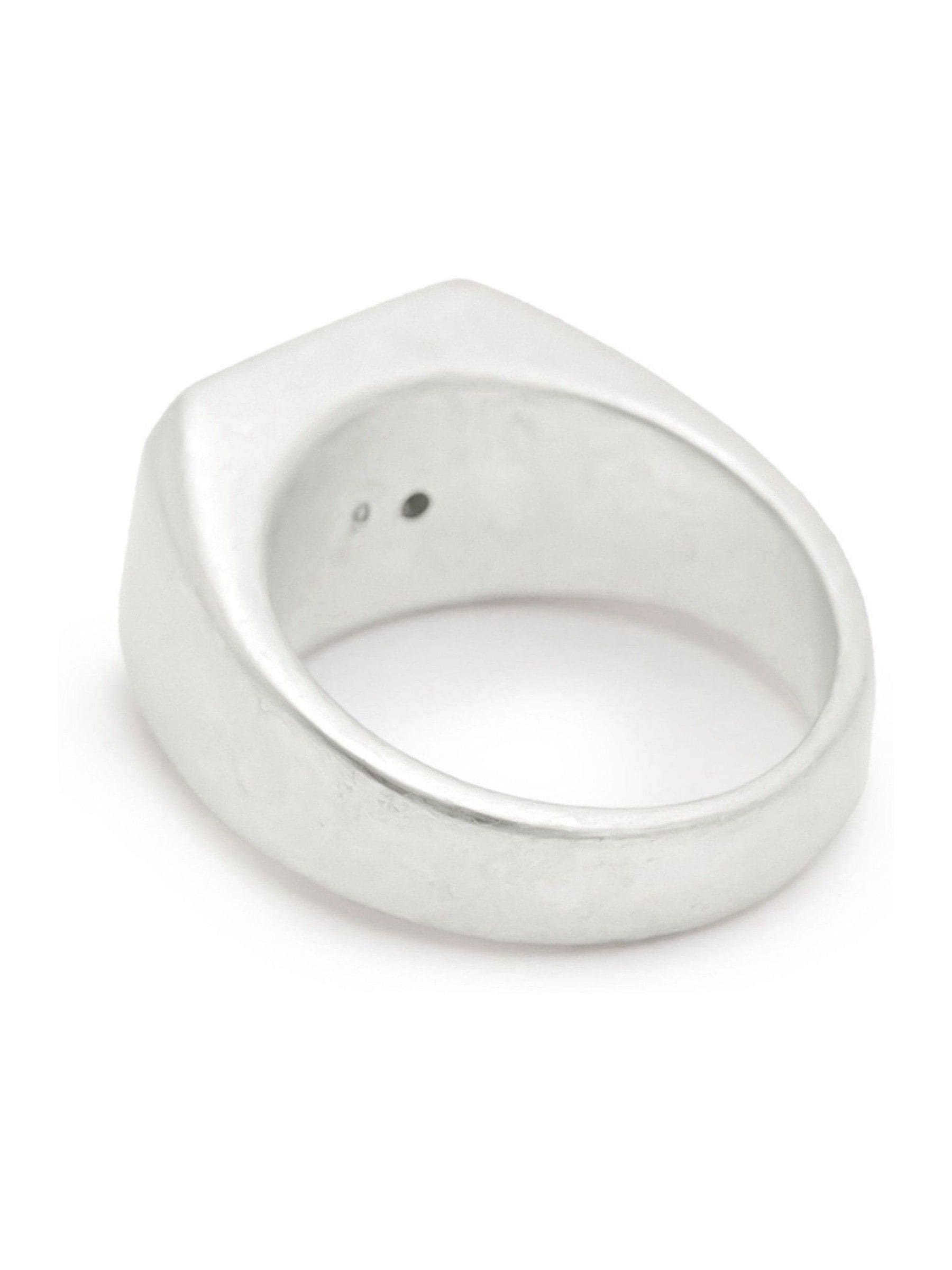 Men's chunky signet ring perfect for everyday. Ring is size 8. Made from silver-tone finish brass. Dimensions - Ring Diameter: Size 8 = 18 mm, Length: 10 mm, Ring Face Diameter: 13 mm Ring Band Width: 5 mm.