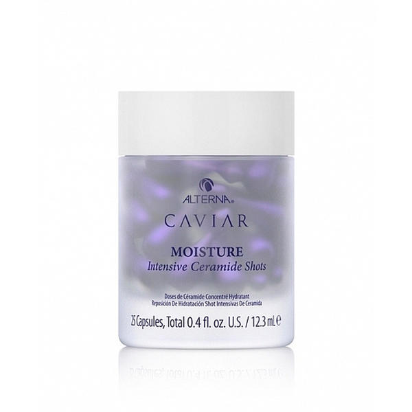 Alterna Caviar Moisture Ceramide Shots boost hair strength, hydrate, moisturise, repair damage, improve manageability, and reduce frizz. Hair smoothness is improved, and hair is protected from heat up to 450°F/232°C. These biodegradable ceramide capsules are green tea & bergamot scented. Ingredients AGE-CONTROL COMPLEX® This proprietary blend of Caviar Extract and Antioxidants is known to reinfuse hair with nutrients that are lost in the aging process, to significantly improve vibrancy and manageability. Omega-3s replenish the hair's natural lipid layer on the exterior of the strand, for better moisture retention, smoothness and shine. Proteins & Minerals nourish and fortify each hair strand. Antioxidants protect hair from future damage. ENZYMETHERAPY® The targeted delivery of enzymes and minerals optimizes penetration of ingredients to improve absorption of vital nutrients and support keratin production for stronger hair. SEASILK A moisturizing blend of marine botanicals that provides exceptional moisture and nourishment to hair