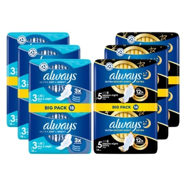 This exclusive online bundle combines two key packs of Always Ultra sanitary towels for comprehensive coverage. The Ultra range features liquid-locking gel designed to pull fluid in rapidly, offering reliable protection when you need it most.