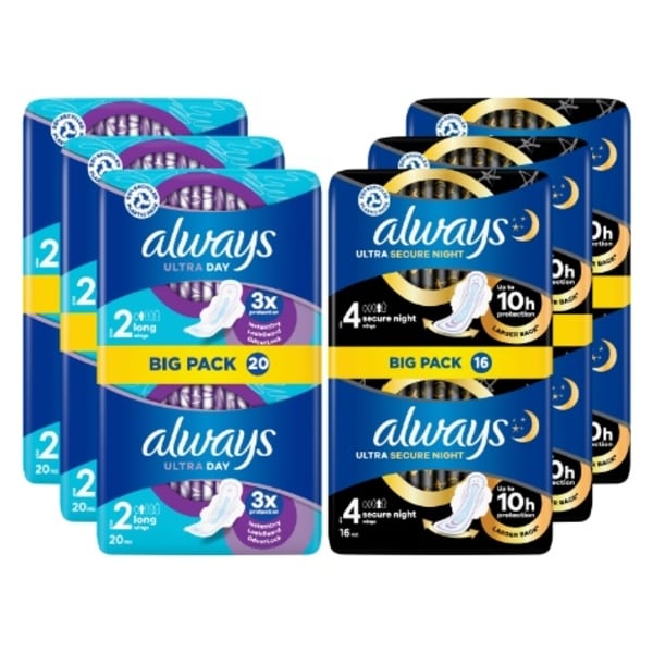 3x always ultra long size 2 sanitary towels wings 20 pads 3x always ultra secure night size 4 sanitary towels wings 16 pads