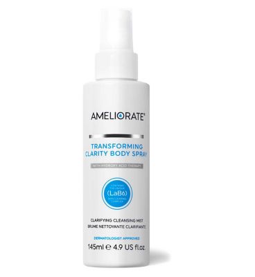 Ameliorate Transforming Clarity Body Spray 145ml expertly addresses body breakouts and general dullness resulting from accumulated dead skin cells. This powerful spray works hard to clear surface congestion, stopping dirt and bacteria from triggering visible imperfections across the body effectively. The formulation ensures a consistently clear, purified skin appearance now.