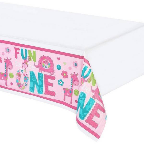 Prepare for a celebration with this disposable plastic table cover from Amscan. It features a fun, vibrant print suitable for a little girl’s first birthday party decorations. This cover provides a simple way to protect surfaces during messy fun.