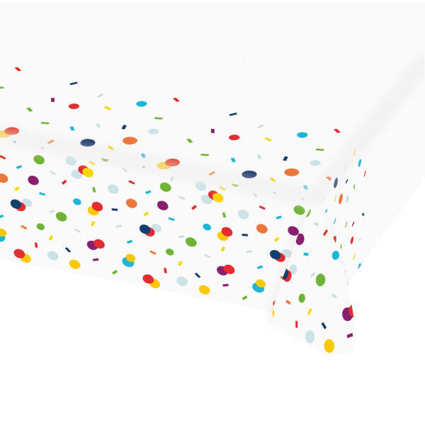 Prepare your celebration space easily with this Amscan paper table cover, ideal for birthdays. It features a vibrant confetti pattern suitable for various festive occasions. This disposable cover offers practical surface protection during busy party times, ensuring easy tidying afterwards.