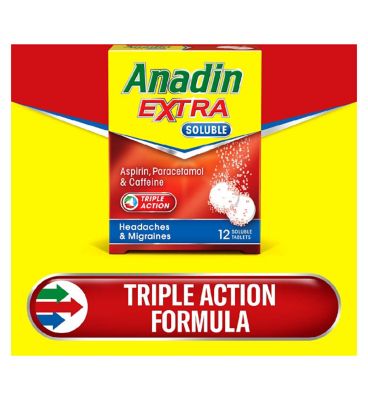 Anadin Extra Triple Action Soluble Tablets 12 pack delivers swift and effective pain relief using a trusted formulation. These tablets contain Aspirin, Paracetamol, and Caffeine, designed to dissolve rapidly in water for quick absorption. Choose this soluble format for targeted relief when managing headaches, muscle discomfort, or general aches quickly.