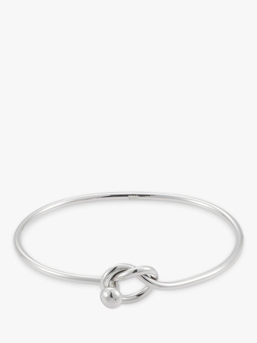 This Andea Silver Bangle showcases an elegant, fluid construction, defined by its signature lovers' knot formation beautifully. It includes a convenient front opening, ensuring effortless wearability for the modern individual user. The simple yet stunning aesthetic guarantees a lovely finishing touch, enhancing every ensemble with true sophistication. It is superb.