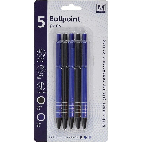 ballpoint black ink blue ink retractable rubber grip smooth writing design plain packaging blister pack euro hook