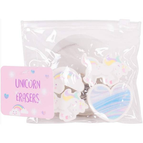• Each eraser showcases detailed fantasy elements like unicorns and rainbows.