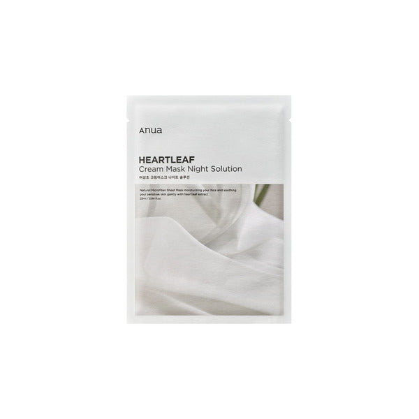 Product Information anua heartleaf cream sheet mask night solution is a luxurious sheet mask that hydrates and soothes sensitive skin it strengthens the skin barrier and prevents dehydration while maximizing moisture retention suitable for all skin types size 25ml