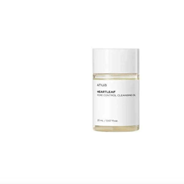 This Anua Heartleaf Pore Control Cleansing Oil is presented in a convenient 20ml travel size format. It is designed to effectively dissolve makeup, impurities, and excess sebum from the skin's surface. This product offers a compact solution for maintaining your skincare routine while on the move.