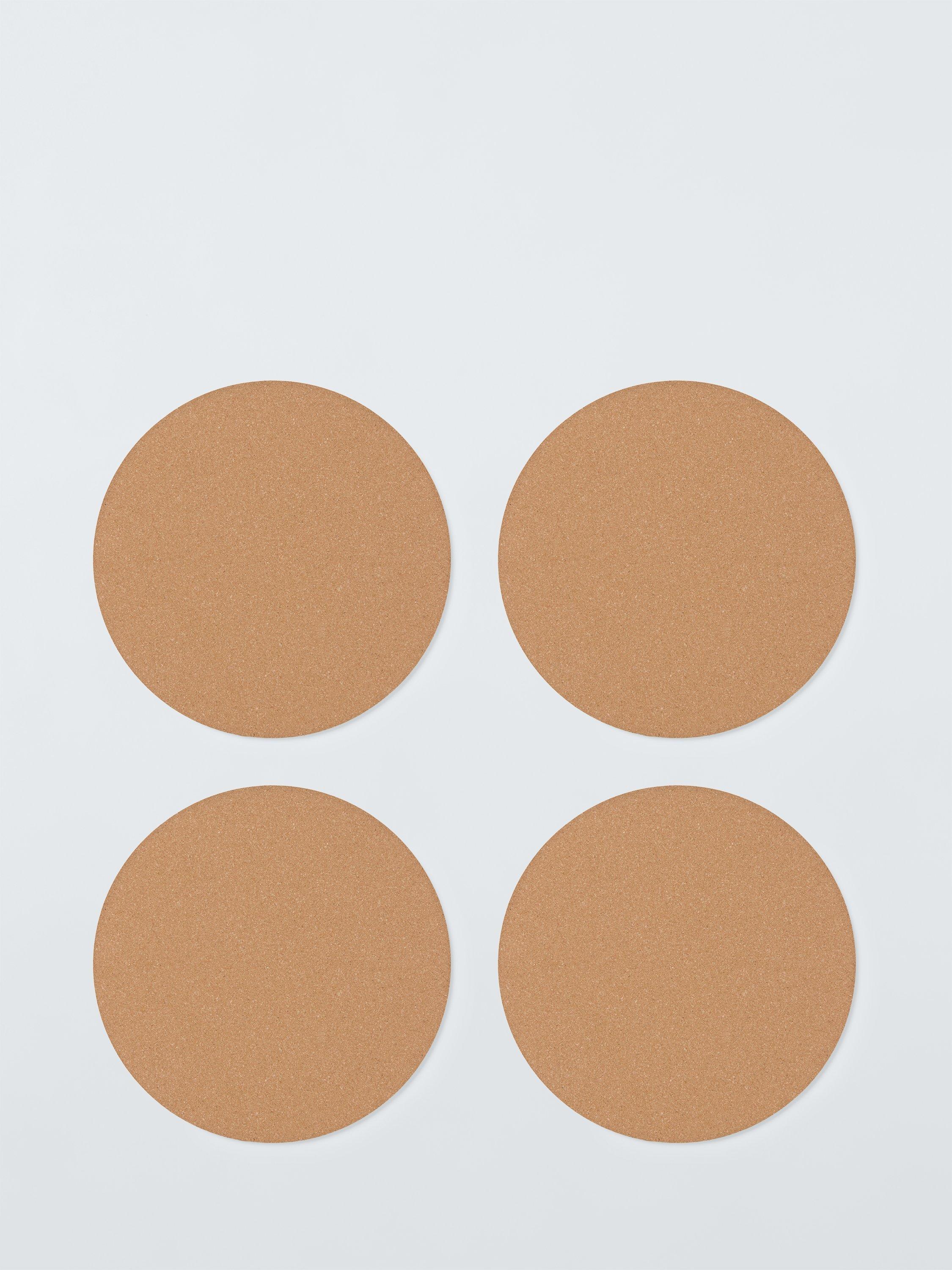 Four round placemats made of heat-resistant cork to prevent condensation damage to your furniture and protect table and countertop surfaces. Team them with the matching set of coasters to bring a natural look to the table.
