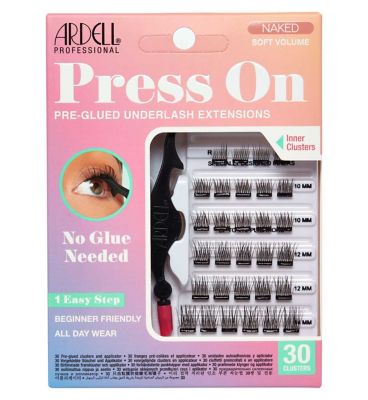 Read MoreLashes just got a whole lot easier... ARDELL's Press On clusters are pre-glued with DUO adhesive, eliminating the glueing step and making the application process easier than ever! With 3 different lengths (10mm, 12mm and 14mm), these pre-glued ARDELL Naked lash extensions, in the style Soft Volume, are perfect for creating a soft glam look that is customised to suit your eye shape.