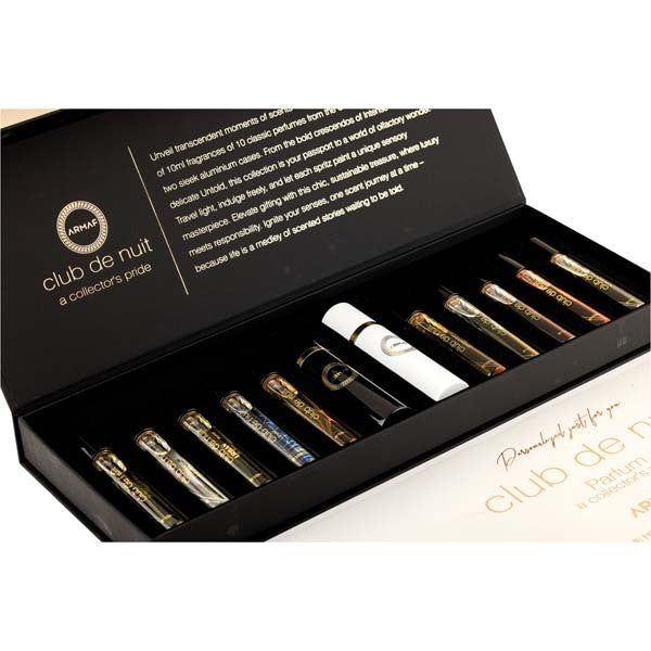 This ARMAF set offers an excellent opportunity to explore a curated selection of scents in convenient, manageable sizes. You receive ten individual 10ml bottles included in this fragrance discovery set. This collection is ideal for sampling established perfumes or finding a new signature smell perfectly suited for any occasion.