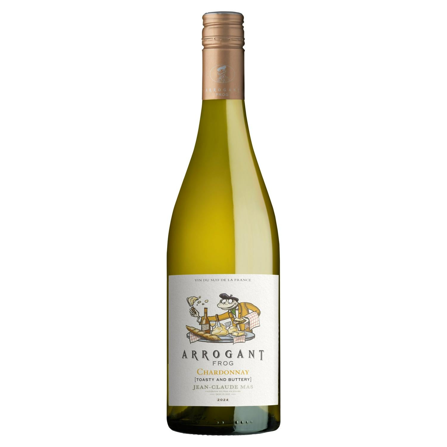 Arrogant Frog Chardonnay is crafted by Jean-Claude Mas, embracing Mediterranean origins with an inviting New World attitude. This white wine offers a rich flavour profile derived from grapes harvested across the five main valleys of the Occitanie region. Experience the complexity that defines this distinctive selection.
