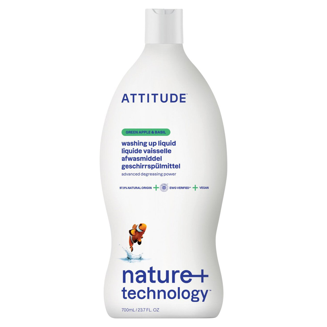 ATTITUDE Washing Up Liquid features advanced degreasing power to effectively clean your dishes. This formulation includes a refreshing scent of Green Apple & Basil for an enhanced dishwashing experience. The product is made with 97.9% ingredients derived from natural sources, reflecting a commitment to quality ingredients.
