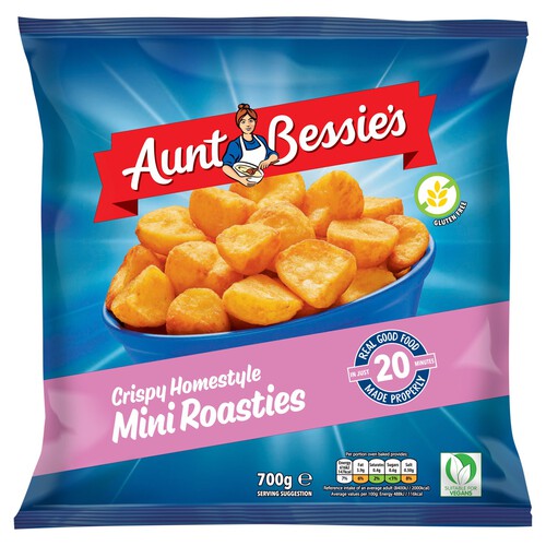 Aunt Bessies Crispy Homestyle Mini Roasties offer a fast and convenient side dish for any meal. These bite-sized potatoes cook quickly, delivering satisfaction with every serving.