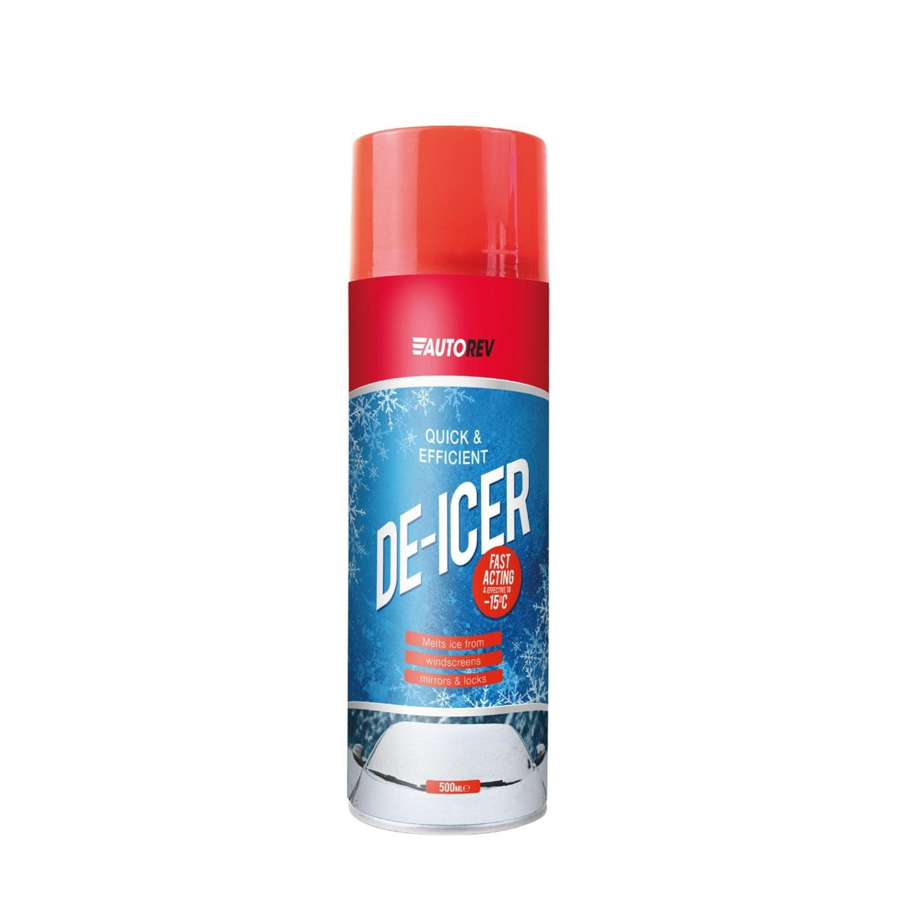 This Autorev De-Icer provides a quick and effective solution for clearing frost and ice during cold weather conditions. Its concentrated liquid formula works rapidly to clear visibility for safer driving. The product is designed for application on exterior glass surfaces and locking mechanisms.