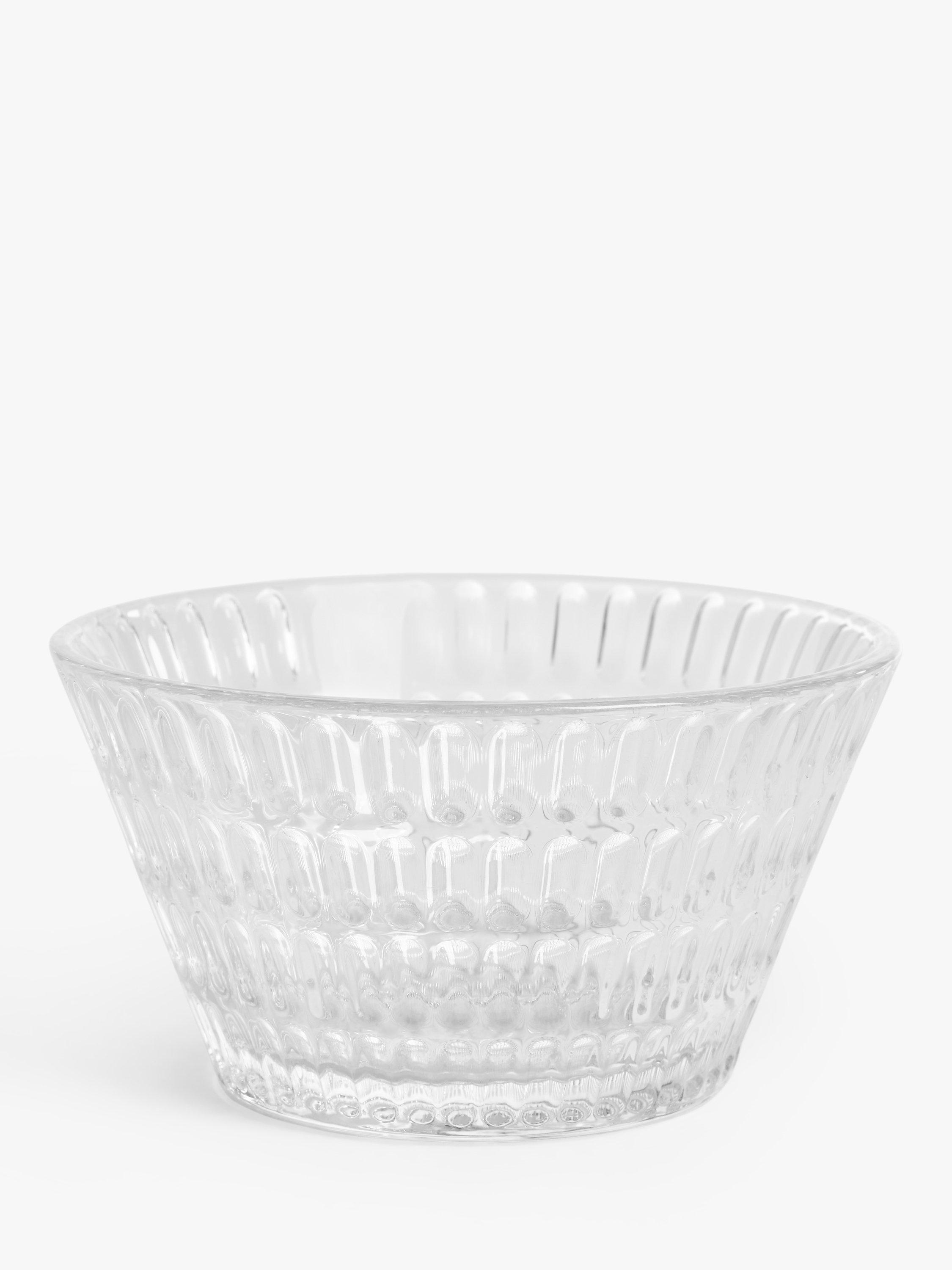 The Ava Glass Dessert Bowl 12Cm Clear is a wonderful addition to your Tableware collection at McGrocer. This piece features a beautiful textured geometric pattern etched into the quality glass structure. It is ideal for presenting individual portions of ice cream, chilled fruit salads, or petite desserts during any gathering. This 12cm bowl truly enhances any tablescape beautifully.