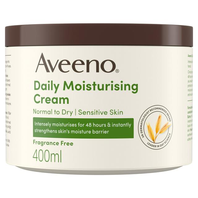 Aveeno Daily Moisturising Cream provides clinically proven, long-lasting 48-hour moisturisation suitable for normal, dry, and sensitive skin types. This velvety soft formula protects and instantly strengthens the skin's natural moisture barrier when hydration is needed most. The cream leaves skin feeling soft, smooth, and thoroughly nourished after application.