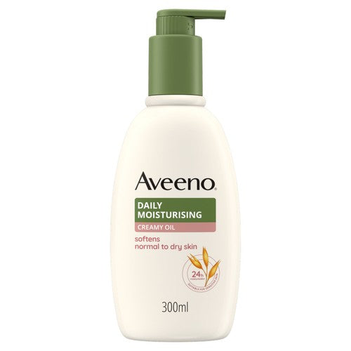 AVEENO® Daily Moisturising Creamy Oil with a rich, non-greasy formula with sweet almond oil that moisturises for 24 hours. It helps prevent, protect and nourish dry skin without the greasy after-feel of a body oil. The formula with colloidal oatmeal improves the skin's natural balance for healthy looking and more resilient skin from the first use.