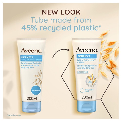 Read MoreAVEENO Dermexa Emollient Cream has a non-greasy, vegan* formula that combines a soothing triple oat complex and ceramides to soothe & protect very dry itchy skin, whilst helping to strengthen the skin's natural barrier. AVEENO Dermexa Emollient Cream mositurises the skin for immediate comfort & soothes and protects very dry and itchy skin & is also suitable for people who may be prone to eczema. It helps strengthen the skin barrier and helps improve the skin’s natural microbiome balance for healthy looking, more resilient skin from day 1. *does not contain animal derived ingredients.