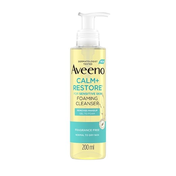 The Aveeno Calm + Restore Foaming Cleanser offers a gentle approach to daily cleansing for delicate skin types. This 200ml formula transforms from a gel texture into a soft foam upon application, effectively lifting impurities and makeup.