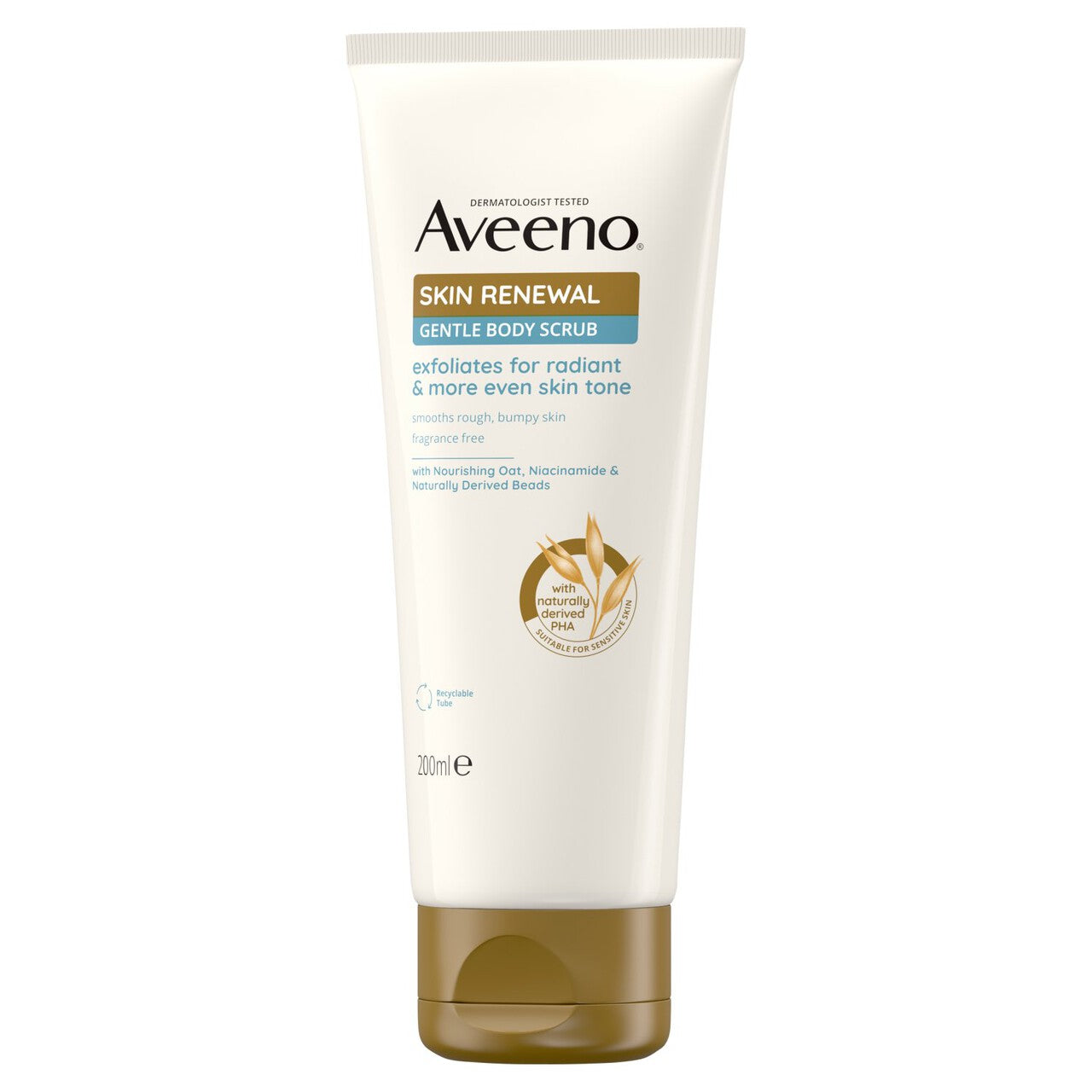 Aveeno Skin Renewal Gentle Body Scrub works to visibly renew your skin texture and tone. Formulated with nourishing oat, niacinamide, and naturally derived exfoliating beads, this product gently buffs away dullness. It is specifically designed to address the needs of dry, rough, and bumpy skin areas.