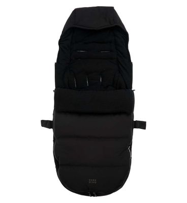 This Bababing footmuff provides essential warmth and comfort for your baby during stroller outings. Designed with a universal fit, this black padded accessory ensures cosy protection against the elements. The essential harness slots allow for secure installation within your pushchair system.