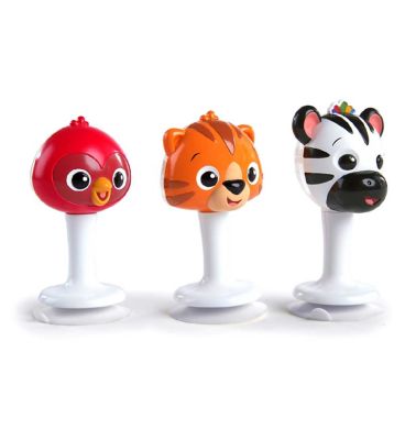 Read MoreAdd more jingles to mealtime, road trips or stay-in-place playtime with the Rattle & Jingle Trio™ from Baby Einstein. With suction cup feet, these music shaker pals stick to flat surfaces like tables and high chair trays. Each friendly face makes a different sound to keep your little one entertained. With transparent backs, your baby will love concentrating on the noisemaker tucked inside. Introduce cause and effect fun with a table toy that’s easy to grab and go!