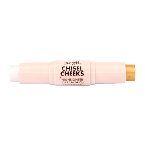 This Barry M Chisel Cheeks Duo features two blendable cream formulas in a convenient, dual-ended stick format. Designed to sculpt and define your facial features, this product allows for targeted application of radiant metallic finishes. Achieve dimension easily with these complementary highlighter shades housed in one portable casing.