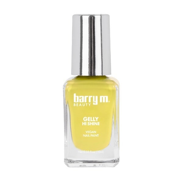 Achieve a striking manicure with Barry M's Gelly Hi Shine Nail Paint in a vibrant yellow shade. This lacquer is formulated to deliver an intensely glossy, mirror-like finish to your nails.