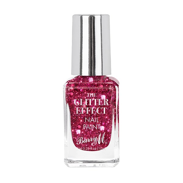 Achieve a dynamic, sparkling manicure with Barry M's Glitter Effect Nail Paint in Fuschia Fiesta. This formulation is designed to deliver intense, eye-catching coverage for your nails. Enjoy the visual texture created by the varied glitter particles suspended within the polish.