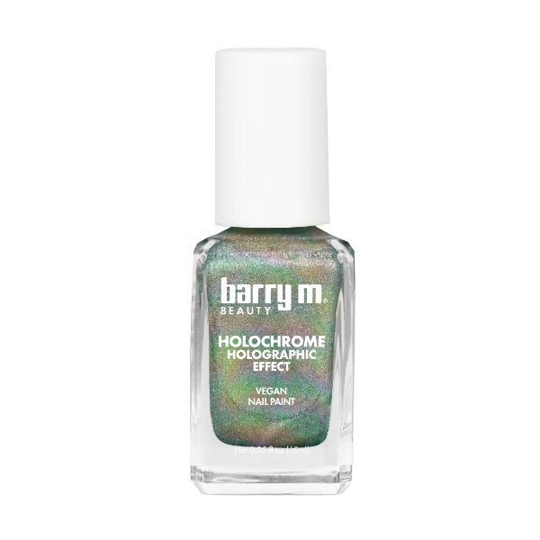 Read MoreEnhance your nails with Barry M's Holochrome nail paints, featuring a captivating, multi-dimensional shimmer that shifts with every angle. From silver gleams to prismatic pops of color, these paints bring a cosmic touch to your fingertips, offering a bold, futuristic finish.