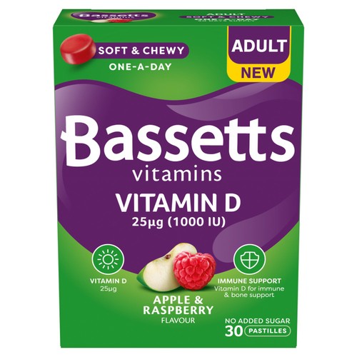These Bassetts soft and chewy pastilles provide a pleasant, convenient daily supplement. Each one-a-day pastille delivers 25μg of Vitamin D to support essential bodily functions throughout the year. Intake is often recommended during darker months when sunlight exposure is reduced. These tasty supplements are formulated with cholecalciferol for optimal benefit.