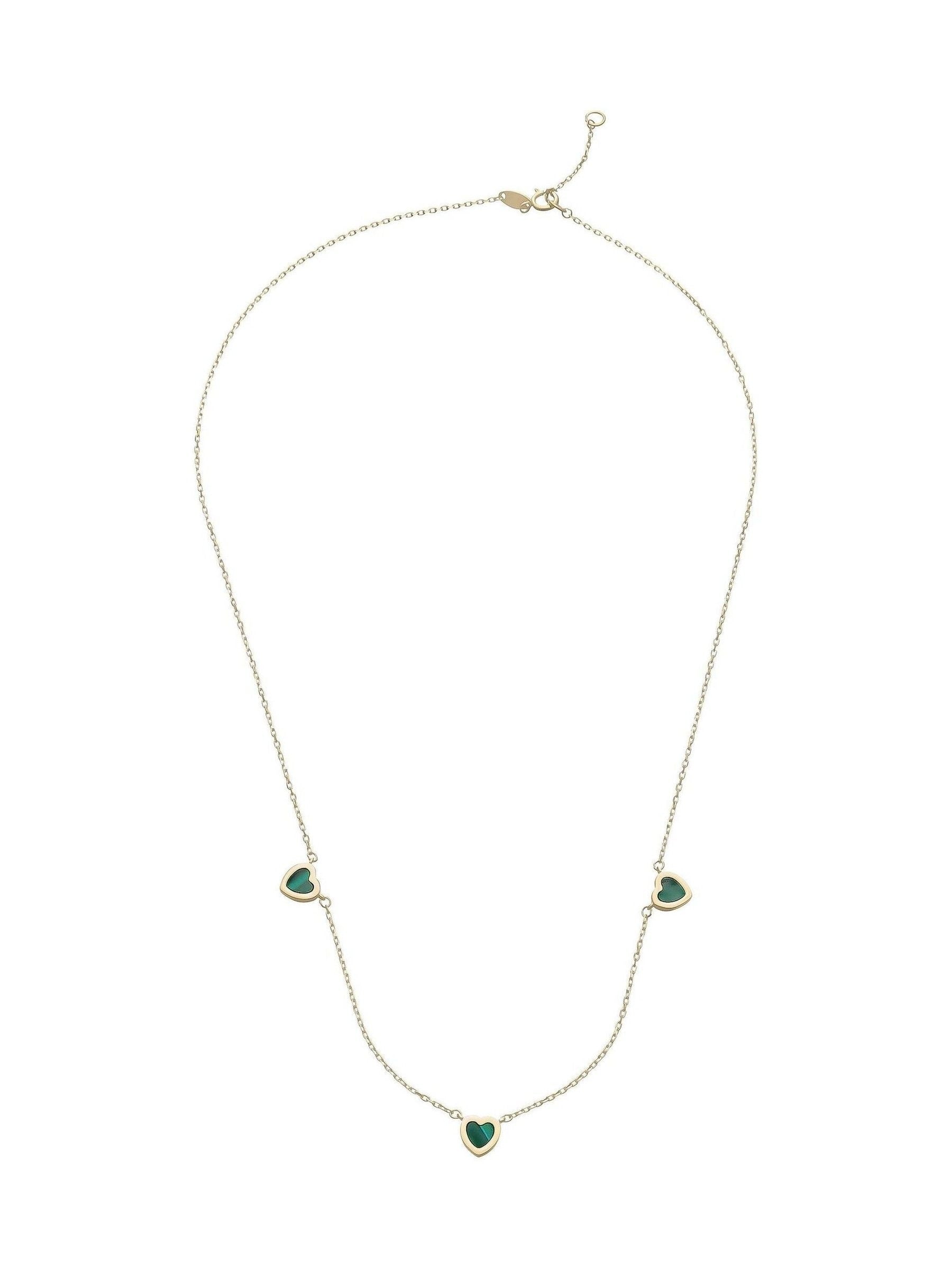 Elevate your jewellery collection with this 9ct Yellow Gold Malachite Heart Necklace, a timeless symbol of love and exquisite craftsmanship. Crafted in 9ct yellow gold and Malachite. Each piece is unique, showcasing the natural beauty of Malachite which may vary in colour and pattern. Necklace length: 45cm.