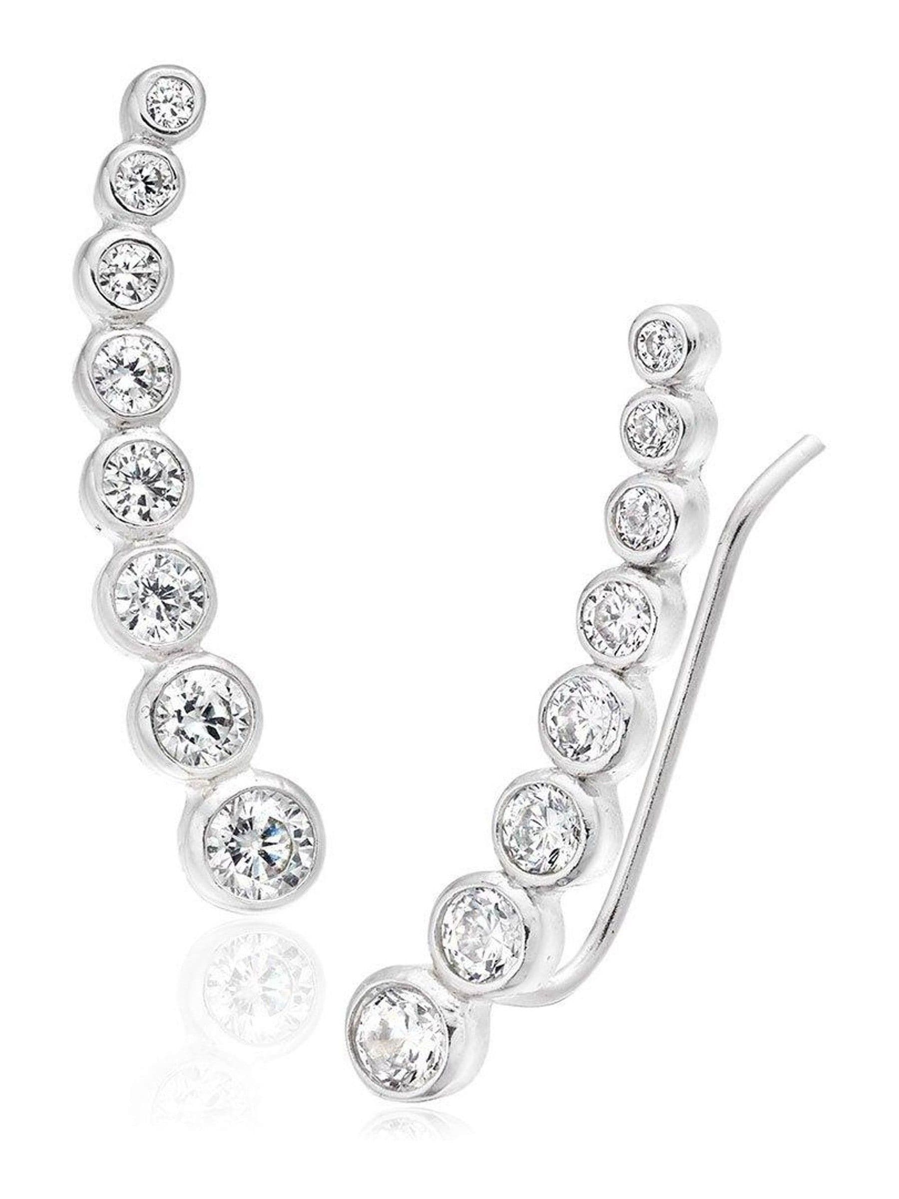 These cubic zirconia climber earrings will transform all your looks. Designed in sterling silver, these eye-catching pair feature a row of cubic zirconia to create a luxurious effect that is perfect for dressing up your evening looks.