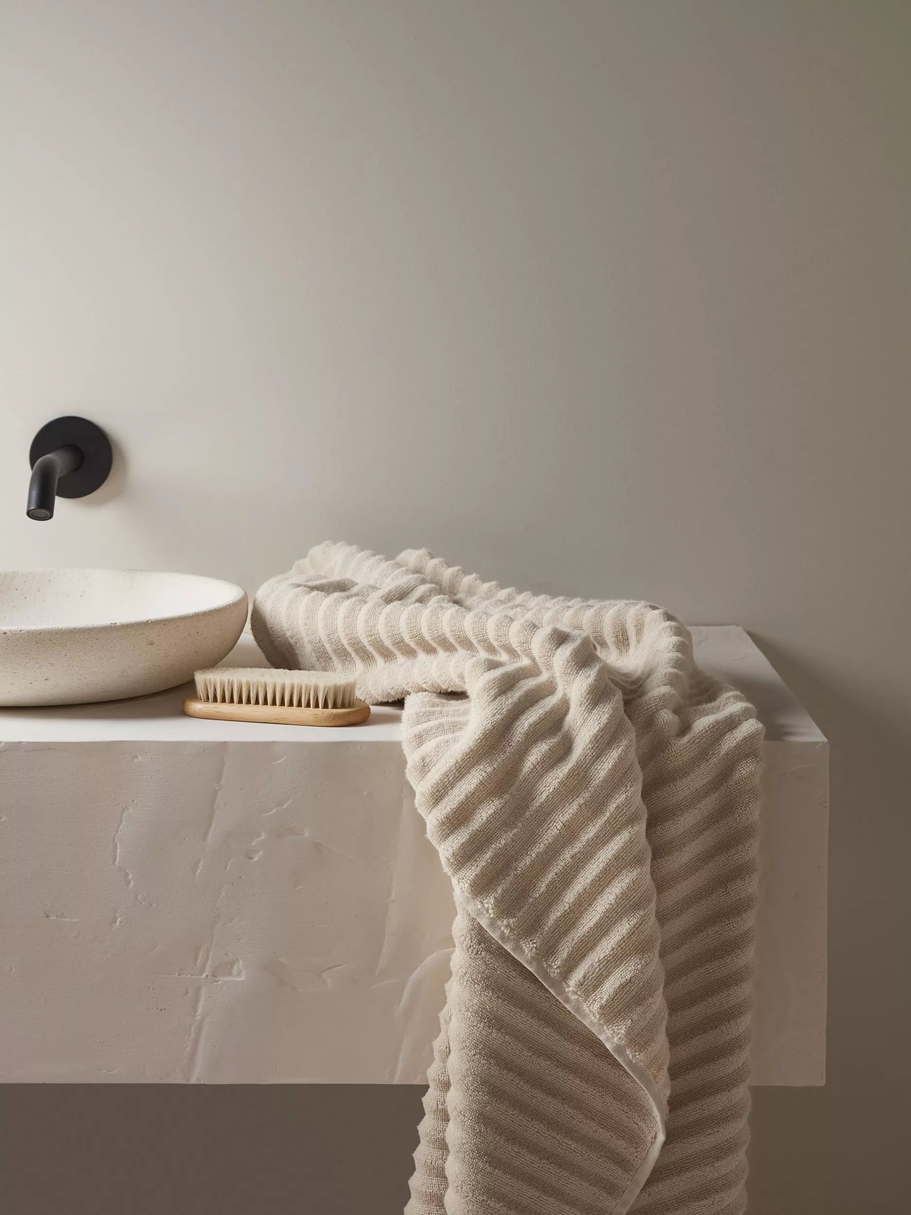 The Ripple Cotton Towel is made from ultra-soft 100% long-staple Turkish cotton with a soft ripple design. Extra fluffy and with high absorbency, The Ripple Towel elevates any bathroom space or wind down routine.