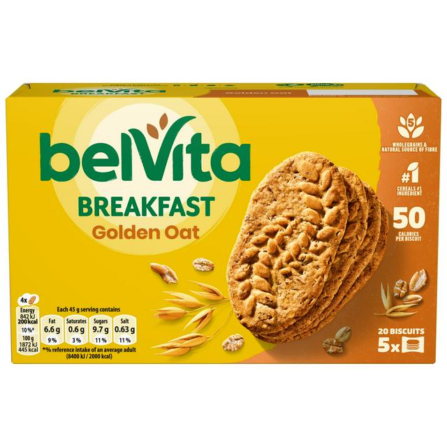 Delicious golden oat makes the morning positive for the whole family, adults and kids These cookies are made with 5 carefully selected wholegrains - wheat, oat, barley, spelt and rye Enjoy belVita on-the-go or as part of a healthy breakfast at home - alongside yogurt, fruit and hot drinks, tea or coffee Explore our range of nutritious breakfast snacks - original and flavoured biscuits, minis, soft bakes, filled and yogurt sandwiches Made with more sustainable wheat, grown in partnership with farmers as part of our Harmony Program
