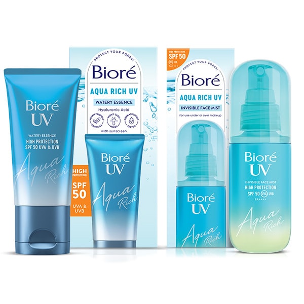 This ultimate suncare bundle pairs the Biore Aqua Rich UV Watery Essence (50ml) with the Invisible Face Mist (60ml). Both components deliver high-level SPF 50 protection, ensuring comprehensive coverage for your daily routine.