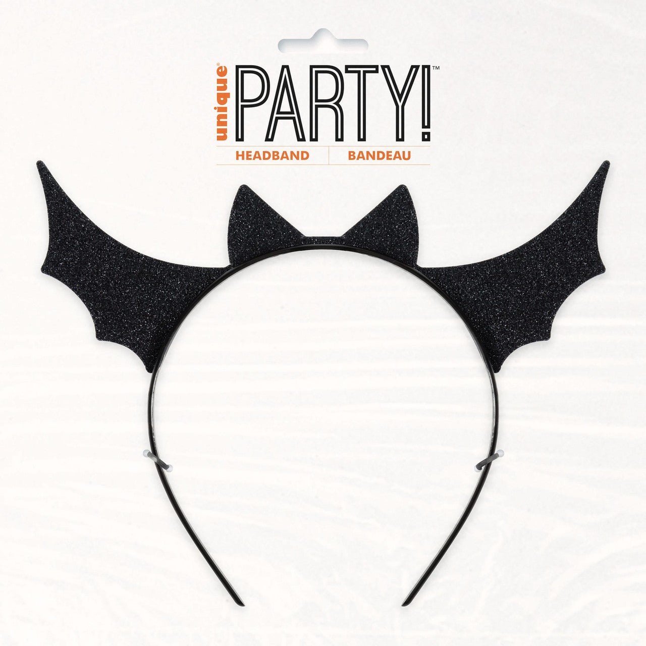 This plastic headband allows for a stylish entrance to any Halloween celebration. It is constructed with a secure band supporting striking black decorations that enhance the festive theme. Coordinate this accessory with other items from our collection of Halloween party supplies.
