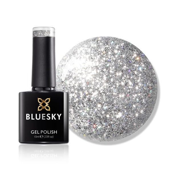 This Bluesky gel polish delivers a mesmerising silver glittery finish ideal for adding glamour. It is designed for high-gloss, chip-resistant wear that can last up to 21 days.